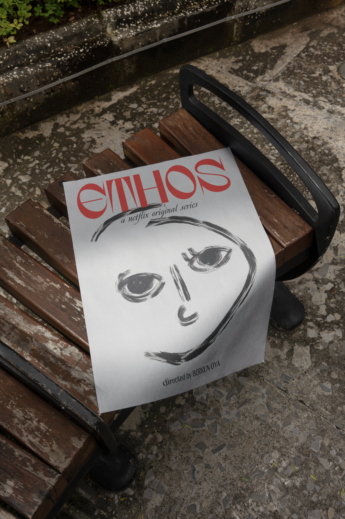 The serif style, with its high contrast between thick and thin strokes, brings a dramatic flair to the text, instilling a sense of tension and anticipation, providing a glimpse of what ETHOS is about. Along with its curved lines, this font choice creates a captivating narrative with elements of storytelling and romance, bringing forth a world of contrasts and emotions.